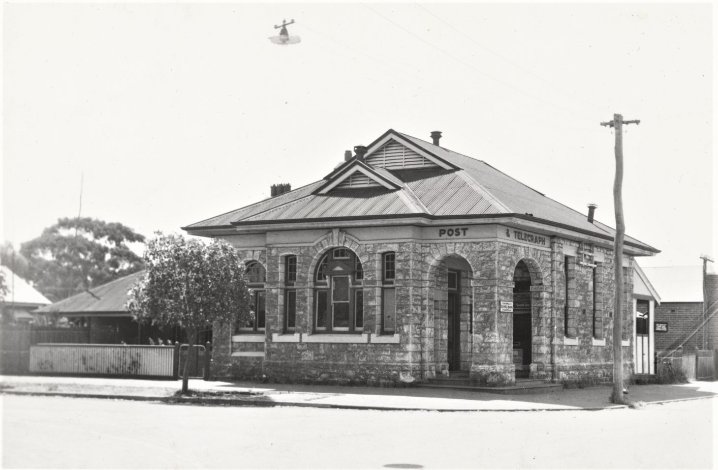 Still used today, this handsome building has white stone walls, a gabled roof of corrugated iron and wooden floors. The style of the design appears to have been influenced by George Temple-Poole, Colonial Architect from 1885 to 1897, and it makes an interesting comparison with the Claremont Post Office built in 1897. The main structure of the building was built in 1912 by DW Griffiths, although a Post Office has been operating on the site since 1896.