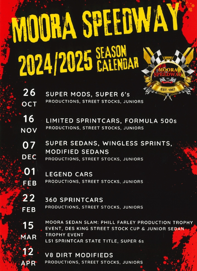 Business Listing for Moora Speedway Sports & Fitness, Things To Do 0458 385 551 mooraspeedway@gmail.com Wheatbin Road Moora WA 6510 Additional Information Follow Us on Facebook Description: Moora Speedway in Moora WA, is the home of the Central Midlands Speedway Association. Images Moora Speedway 2 Screenshot 2024 10 21 102905